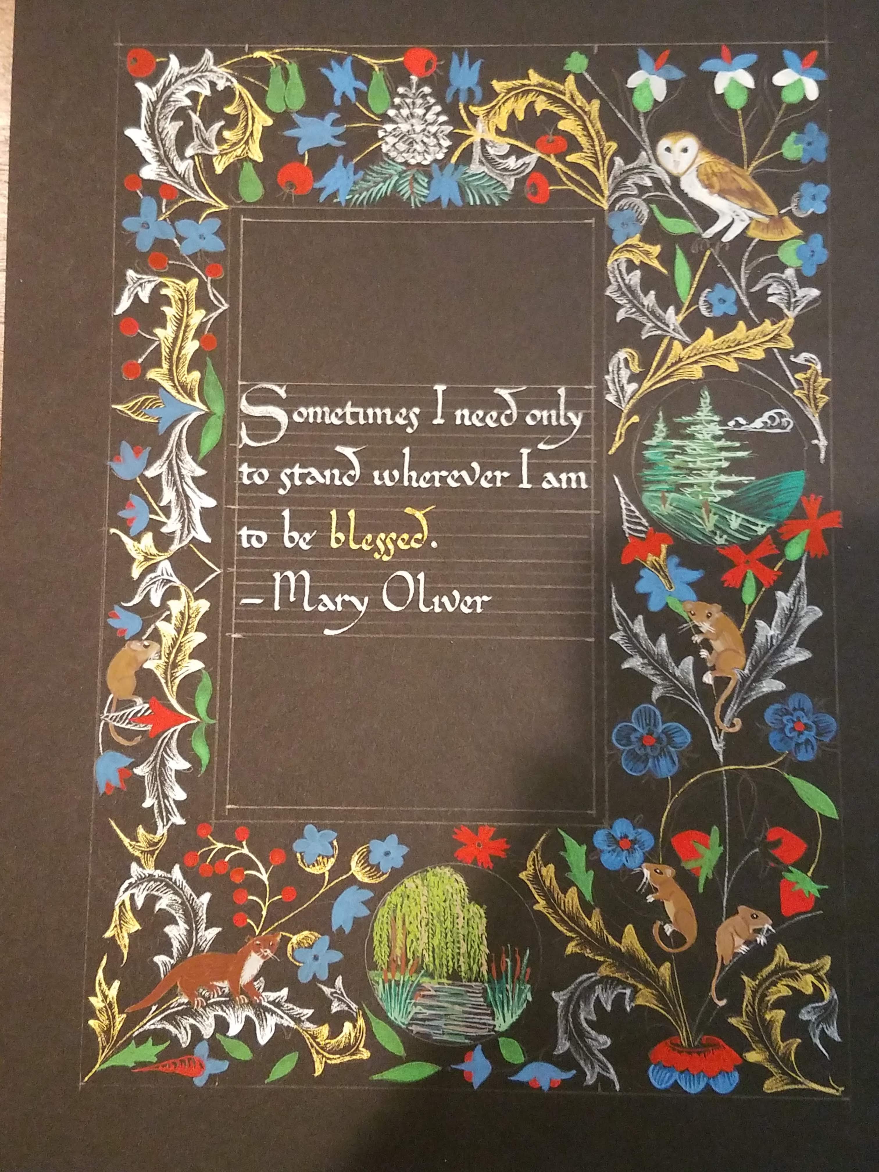 An example page from the 1400s of the illumination style we were to use. We were given several options to play with, but this was the style I preferred.