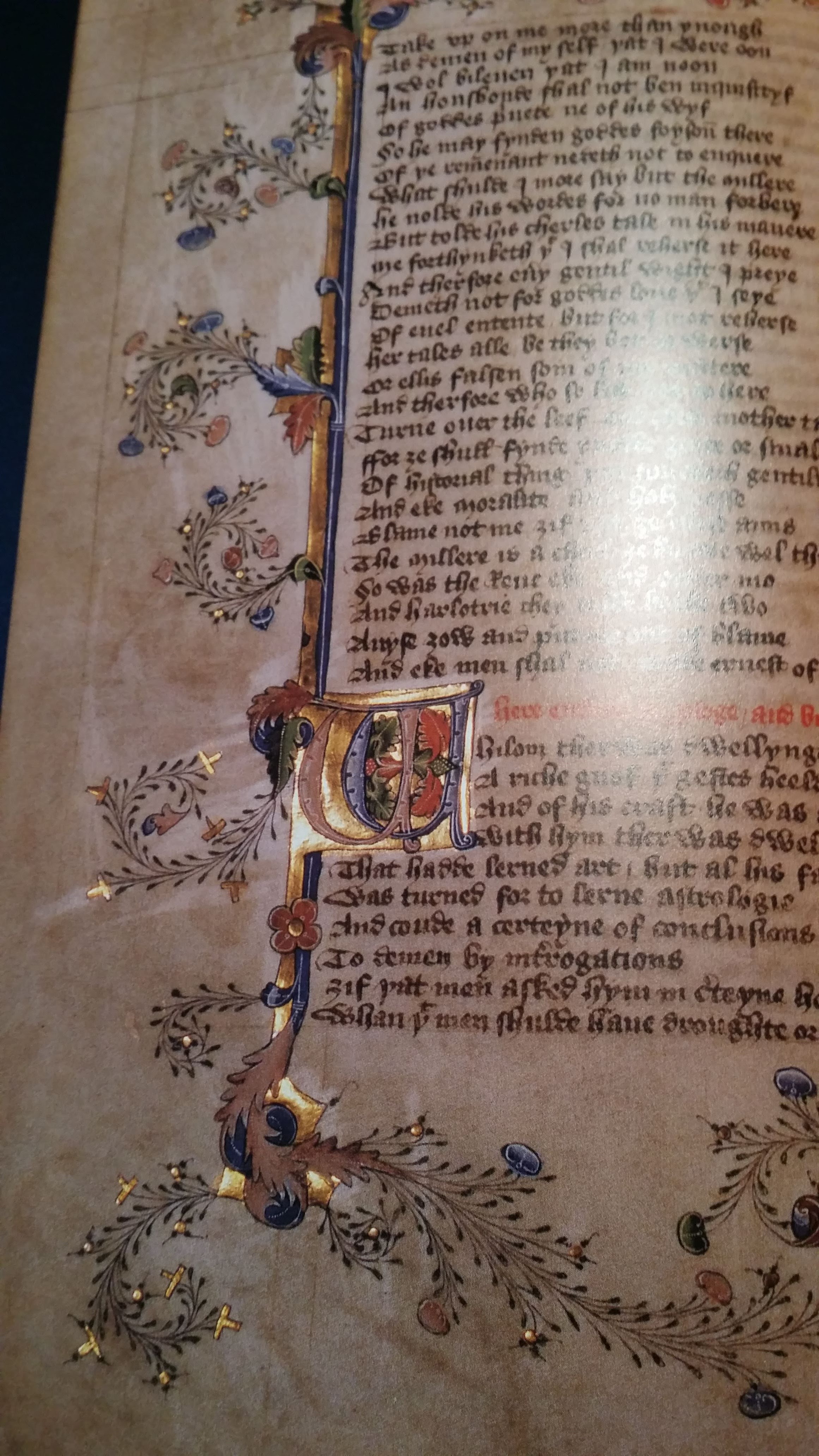 The gold is in place on this page but the excess has not yet been brushed away.